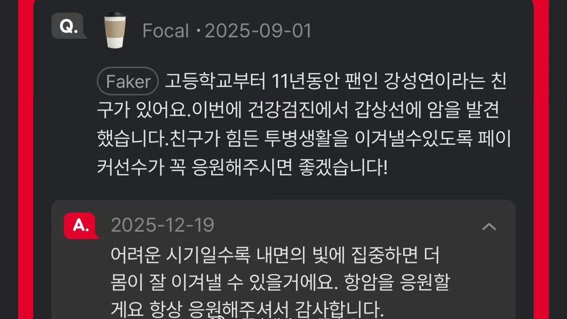 Faker promptly replied: “During the hardest times, you must focus on the inner light. That will give your body strength to overcome it. I will support you, and thank you for your continuous support. Though late, the reply is sincere.” Faker’s attitude toward fans is truly commendable; he even goes back to older messages and praises them. Now, everyone is looking forward to Faker’s fan meeting.