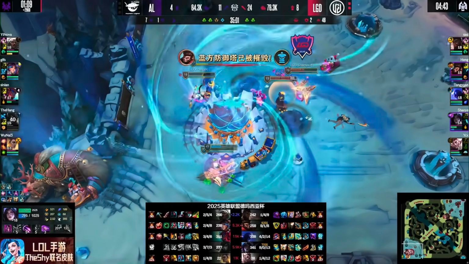 Although AL’s loss was expected, no one anticipated they’d be so thoroughly dominated by a struggling team like LGD. This was the only BO5 in the playoffs that ended with a 3-0 sweep, lasting just 92 minutes. Calling it a “human vs. machine” match isn’t an exaggeration. The gap between AL’s second team and LGD’s main roster is quite significant; even a weak team like LGD is hard to contest because their teamfight coordination is on a completely different level.