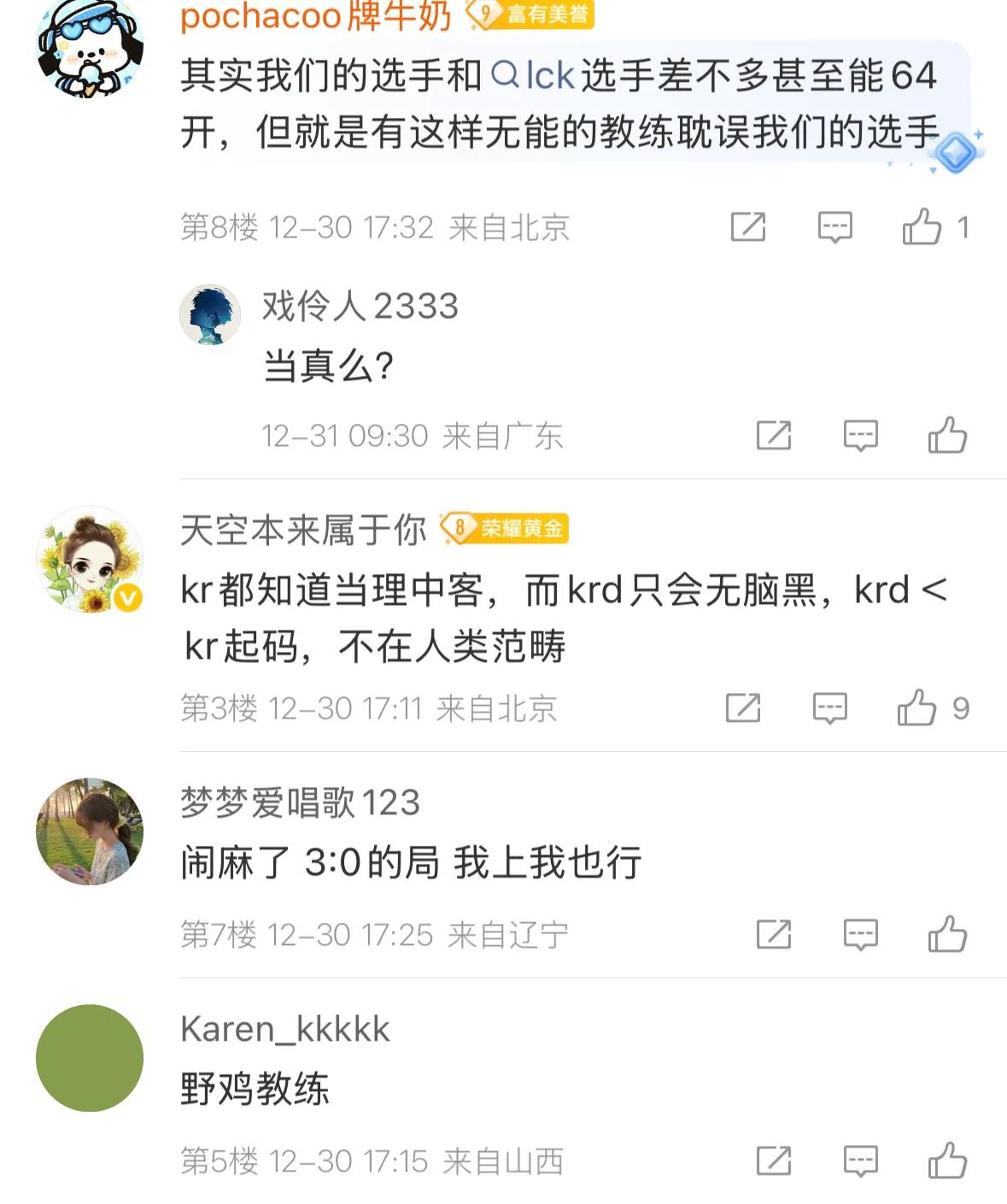 It seems coach Redmi isn't held in as high regard by LCK fans as before; he had a good reputation in LPL, but perhaps his salary in LCK isn’t very high. If not for family reasons, he probably wouldn’t have returned to LCK. Who wouldn’t want good food, fun, and a high salary? LCK must be troubled by performance issues. Who would have thought that a top coach from LPL would become a public enemy upon returning to LCK?