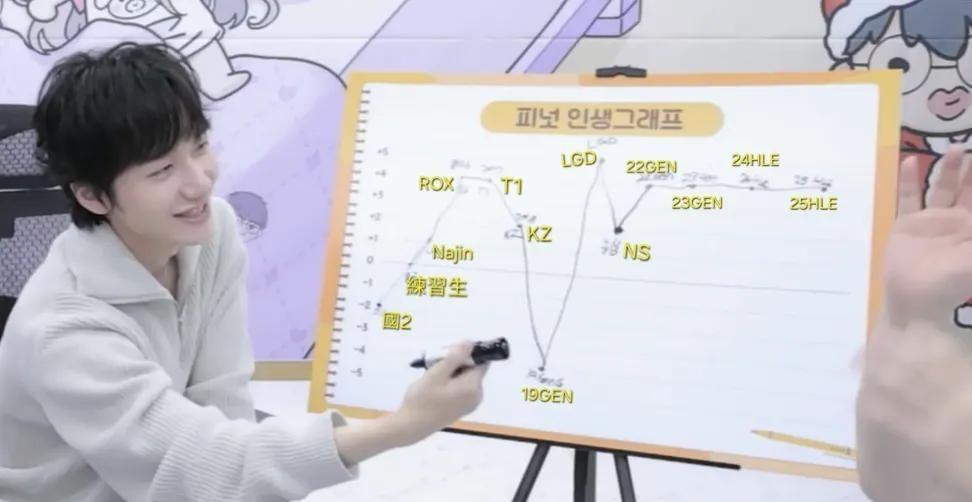 Forced to retire for military service, Peanut recently streamed and drew a chart of his career progression. From playing ranked games to becoming a trainee, then joining DRX, Peanut’s career was on the rise. After leaving T1, it declined sharply, but upon transferring to LGD, it improved suddenly. Although there were ups and downs in the following years, his performance remained relatively stable.