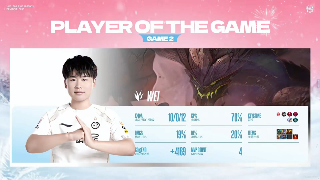 The second game became WEI’s show. Playing jungle Malphite, he achieved an incredible 10-0 personal score, dominating the match. Alongside top laner Soboro’s Renekton, they easily secured resources and team fights, leaving LNG powerless and suffering a crushing defeat.