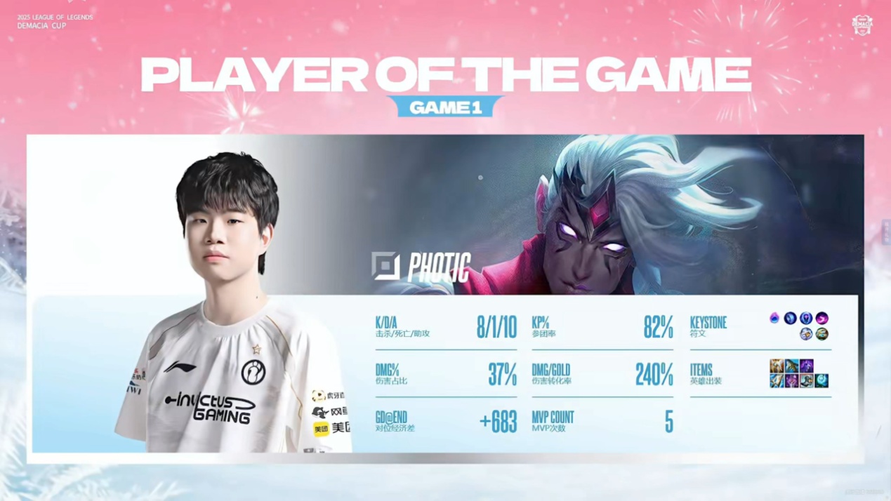 Compared to last year, IG’s current roster still looks somewhat fragile. In my opinion, for IG to succeed, at least two of their three core players must consistently carry. Photic has performed well in the Demacia Cup, but his true strength remains to be seen. Soboro, as a young top laner, shows potential for growth.