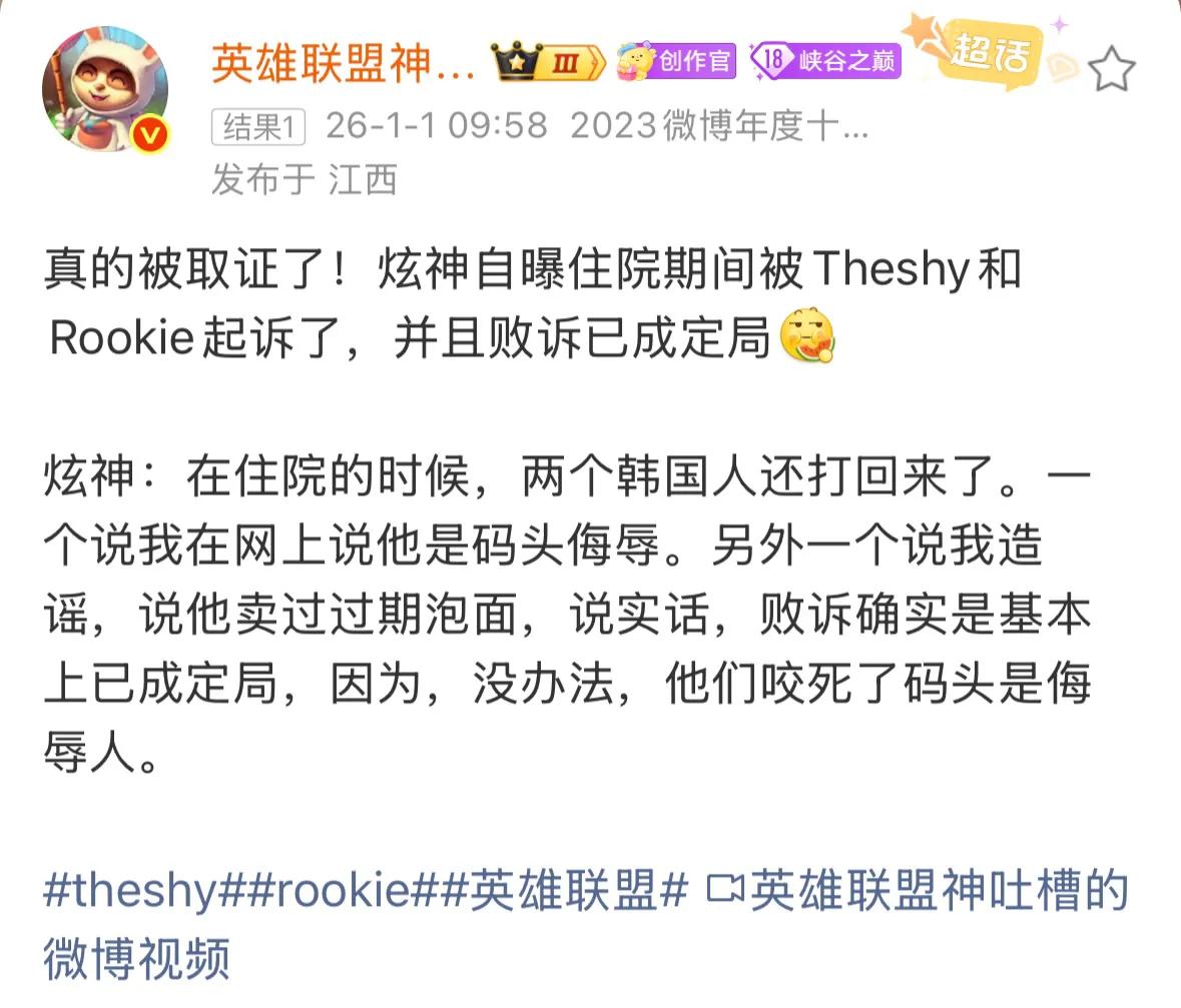 While hospitalized, he was directly investigated and evidence was collected. Rookie and Theshy filed a lawsuit against him for two main reasons: spreading rumors about selling expired instant noodles and insulting "horse head" online. Xuanshen claimed he thought "horse head" was a very cool title and considered it a compliment. Ultimately, he admitted losing the case was almost certain since IG insisted "horse head" was an insult. Honestly, whether it’s praise or insult is something both viewers and he clearly understand. Previously, it wasn’t pursued deeply, but now many are hoping to see Xuanshen’s apology statement.