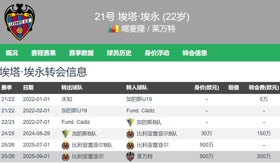 Ayong developed in Cadiz’s youth academy before moving to Villarreal’s youth setup. In the summer 2025 transfer window, he joined Levante from Villarreal for a fee of €3 million. At that time, his market value was only €5 million, but it has now surged to €20 million.