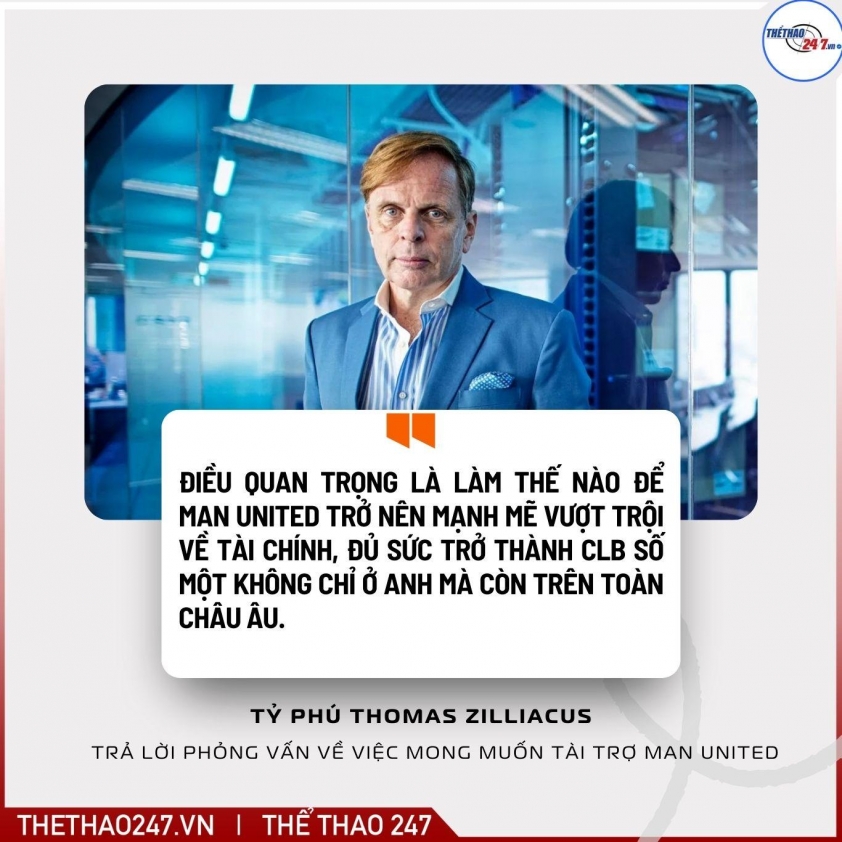 Thomas Zilliacus is one of the three prominent figures competing for ownership of Manchester United in 2023, alongside Sir Jim Ratcliffe and Sheikh Jassim. At that time, the Glazer family was considering selling all or part of the club, sparking a global bidding war. The Finnish businessman proposed a fan-centered model and claimed this plan could help Man United generate long-term value up to 15 billion Pounds.