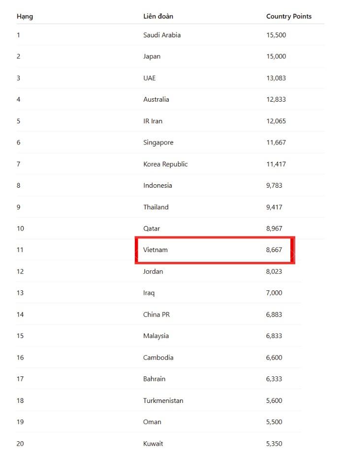On a broader scale, in the East Asia multi-season cumulative ranking, Vietnamese football currently stands 7th with 38.020 points. The gap with higher-ranked teams is narrowing thanks to the consistent performances of clubs over the past two seasons. If CAHN continues to advance deep into the AFC Cup 2, Vietnam has a real chance to break into the East Asia top 6, a position that qualifies for the AFC Champions League group stage under the new format.