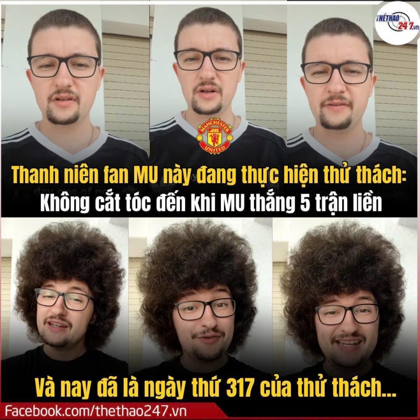 Frank Illet, a unique Manchester United supporter, shared videos on his personal TikTok account. Notably, his hair is very long, and he set himself a tough challenge: not to cut it until United wins five consecutive matches. The challenge began in October 2024, and so far, there is no sign that he has trimmed his hair.