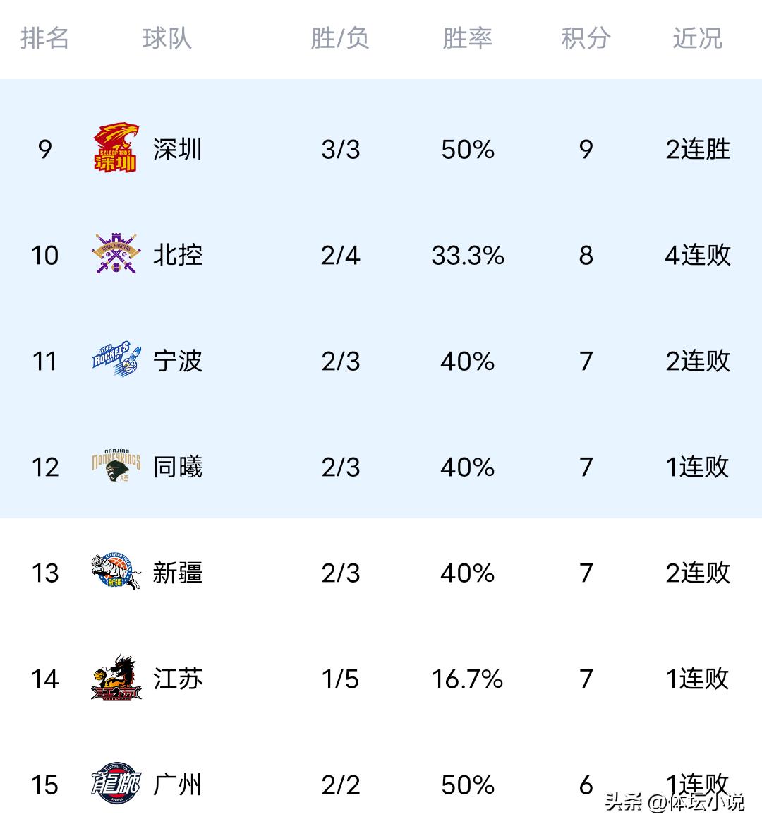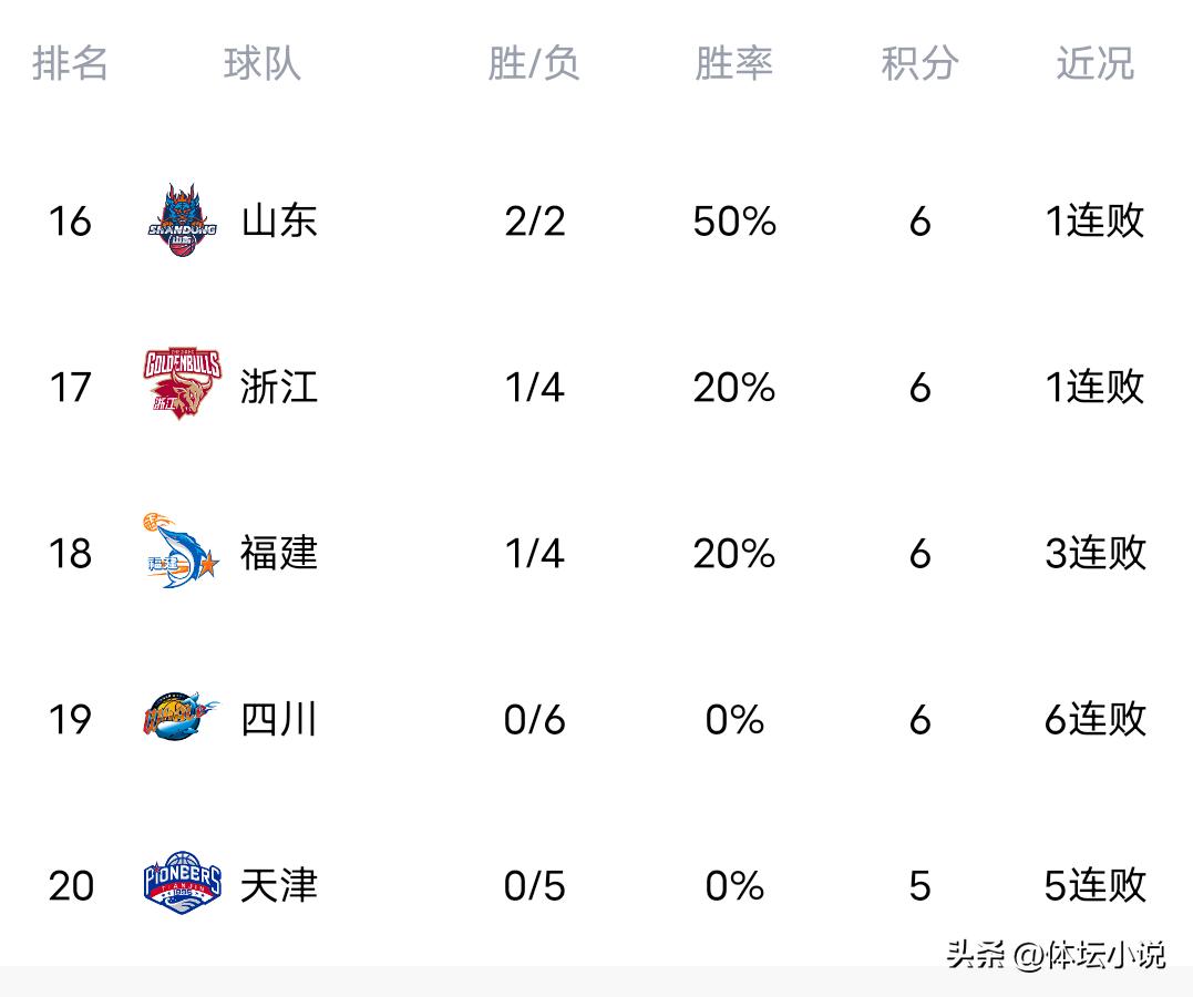As a result, in the latest rankings, only Beijing and Guangdong remain undefeated with five straight wins. However, the top spot has changed hands, with Guangsha, having played one more game, edging out five-win Beijing to take first place. Shanghai, also with one extra game played, surpassed five-win Guangdong to claim third. Meanwhile, Sichuan and Tianjin remain winless at the bottom of the table. Jilin has performed well, bouncing back from two opening losses to win four straight games and climb to fifth place!