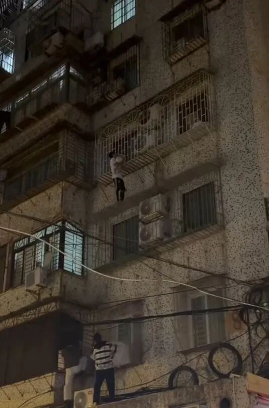 Reported by journalist Wang Wei and intern Li Xin On the night of December 24, a tense scene unfolded at Baimagang Community in Tianhe District, Guangzhou. A young boy’s head was trapped in the anti-theft net on the 4th floor, with his body suspended in the air, facing imminent danger of falling. At this critical moment, three young men quickly sprang into action. Among them, Guo Yingxin, wearing a white shirt, climbed up barehanded to support the child and successfully pushed him back inside the apartment. Netizens affectionately nicknamed him Guangzhou’s "Lifting Brother."