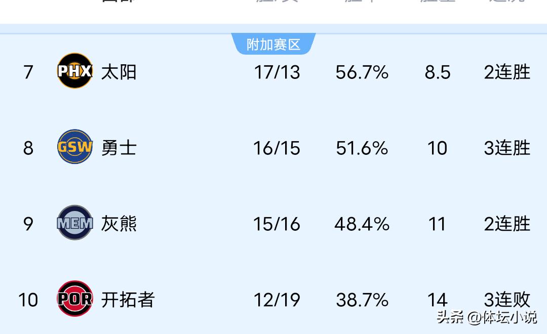 On December 27th Beijing time, the NBA regular season went on with several games concluding recently. The Bucks were overturned by the Grizzlies 104-125, the Suns beat the weak Pelicans 115-108, the Eastern leader Pistons were shocked by the Jazz 129-131, and the Clippers regained form with a 119-103 smooth comeback against the Trail Blazers. Consequently, the latest Western Conference standings list the Suns seventh, the Grizzlies ninth, and the Trail Blazers suffering a third consecutive loss at tenth!