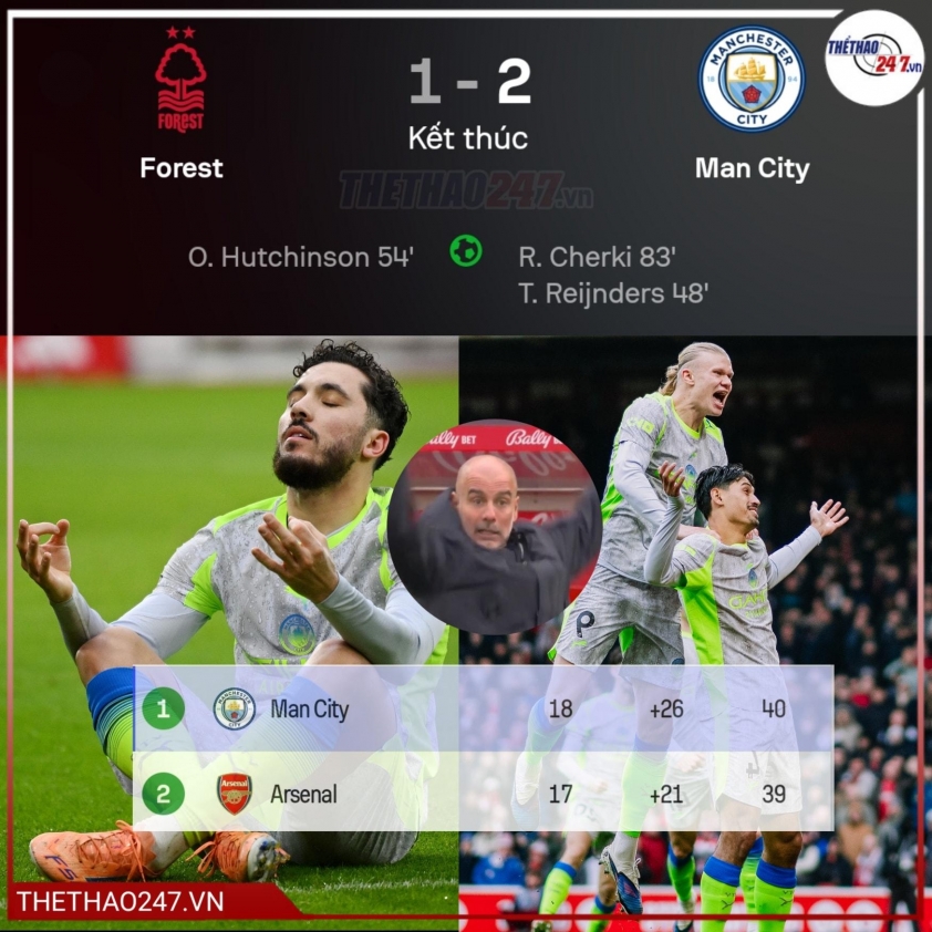 The 2-1 victory at City Ground against Nottingham Forest not only allowed Manchester City to temporarily take the top spot in the Premier League but also held great emotional significance for Pep Guardiola. After the match, the Spanish coach repeatedly emphasized the value of these three points, especially given Man City faced a highly difficult and physically strong opponent.