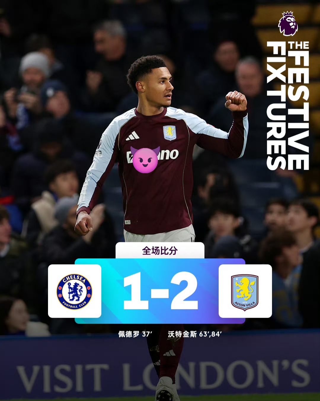 - Chelsea lost 1-2 to Aston Villa.The Blues were overturned at home, with Watkins scoring twice off the bench. Shots on target were 3-8, with Aston Villa dominating Chelsea. Villa have won 12 of their last 13 matches, collecting 36 points. Emery has transformed Aston Villa into a beautiful team, maintaining a three-point chase behind league leaders Arsenal.