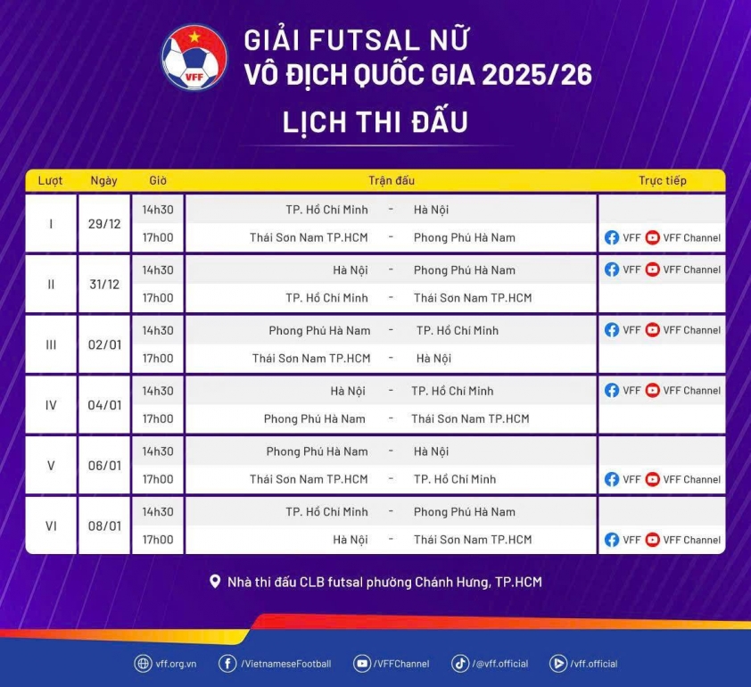 To serve the fans, the Vietnam Football Federation (VFF) will broadcast some matches live on the VFF Channel YouTube. The tournament promises exciting matches, contributing to the development of women's futsal in Vietnam.