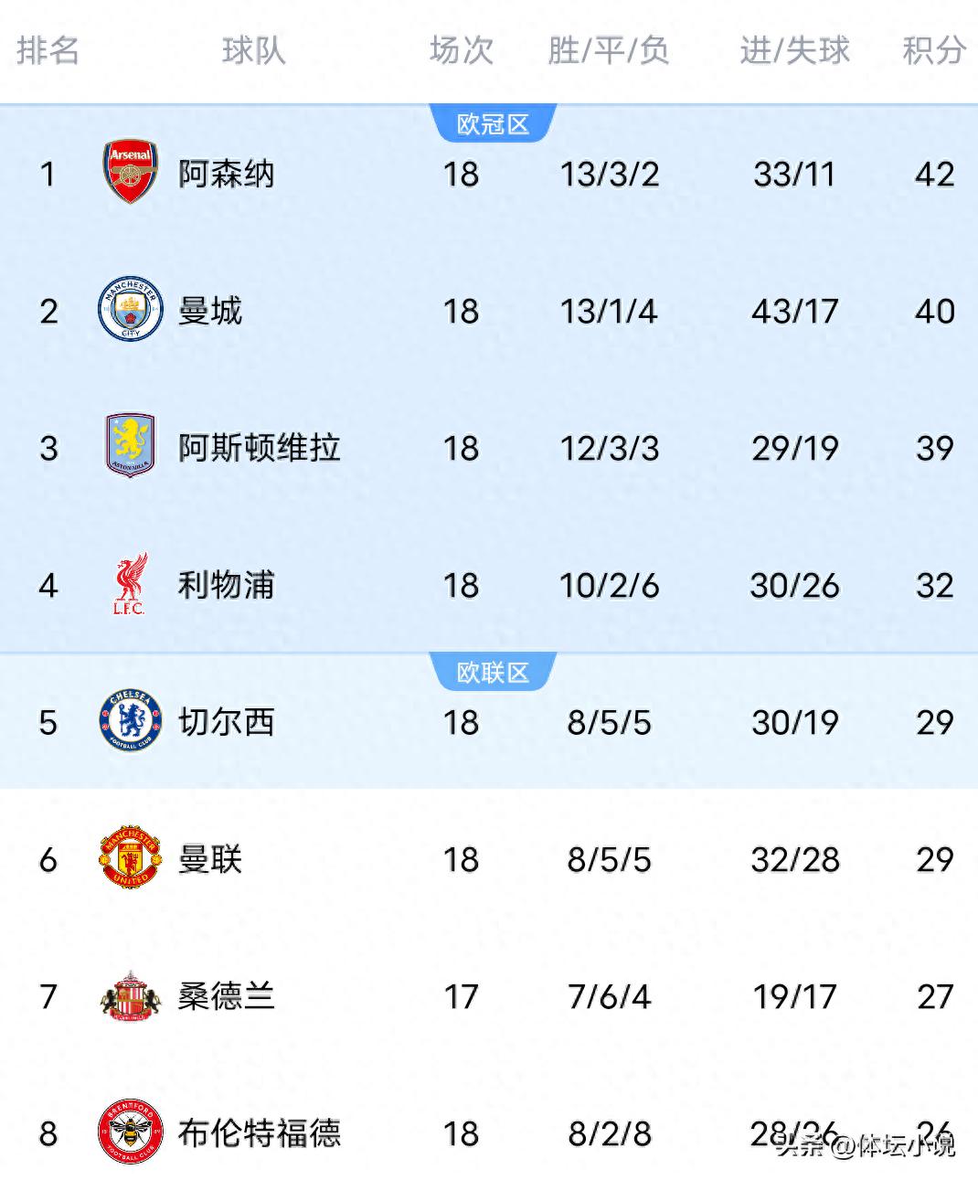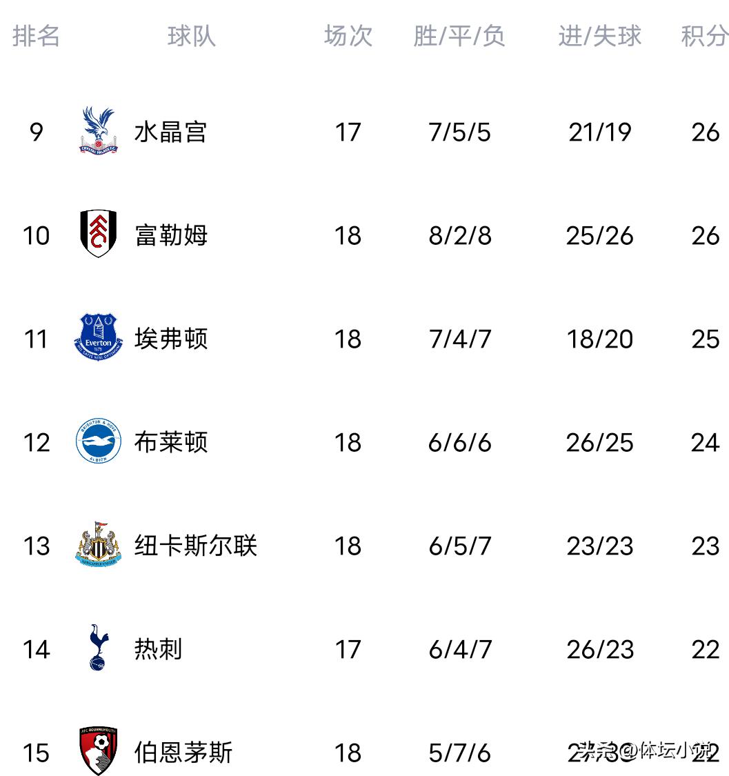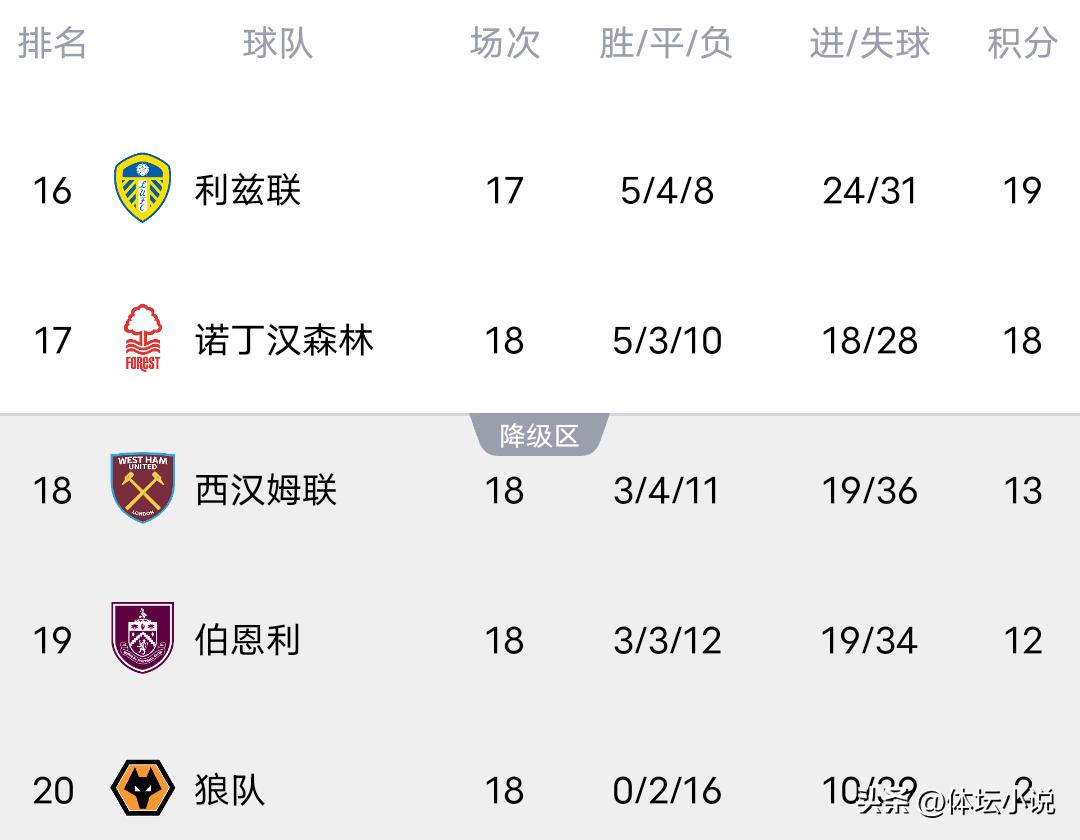 On December 28th Beijing time, the 18th round of the Premier League began with multiple matches ending today. Nottingham Forest was beaten 1-2 by Manchester City, Arsenal secured a 2-1 victory over Brighton, Liverpool edged out the bottom-placed Wolves 2-1, and in the spotlight match, Chelsea lost 1-2 to Villa. Consequently, the latest standings have been updated: the top three all won, maintaining their ranks, Arsenal still leads by 2 points, Chelsea dropped to fifth after their loss, and Liverpool’s win propelled them past Chelsea into fourth place!