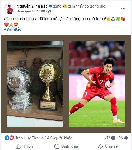 Instead of talking much about the award, the 2004-born striker chose to reflect on the journey he has been through. The ups and downs and challenges at both club and national team levels helped him grow professionally and mentally. And in his latest social media post, Dinh Bac sent a message to himself.