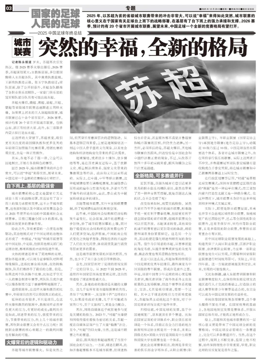 Looking back at 2025, the impact brought by city leagues was significant—happiness arrived suddenly. Looking ahead, a brand-new competitive structure for Chinese football is likely to emerge.