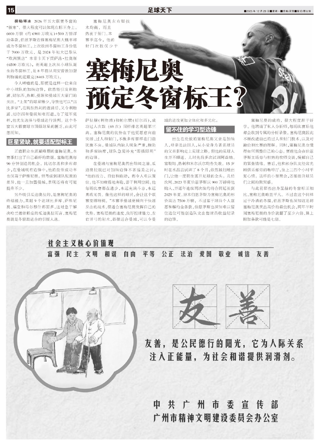 By Han Bing The "extreme cold" of the 2026 winter transfer window in the top five European leagues is largely reflected in the record signing. With a £60 million (approximately €69 million) base fee plus a £5 million performance-related add-on, Bournemouth winger Semenyo is expected to be the winter’s most expensive transfer. The last time a European winter signing was under €70 million was in early 2024, when PSG bought Gonzalo Ramos from Benfica, often dubbed a “European bargain,” for €65 million. The last Premier League winter record signing from a smaller club was Virgil van Dijk, who moved from Southampton to Liverpool eight years ago for £84.65 million.