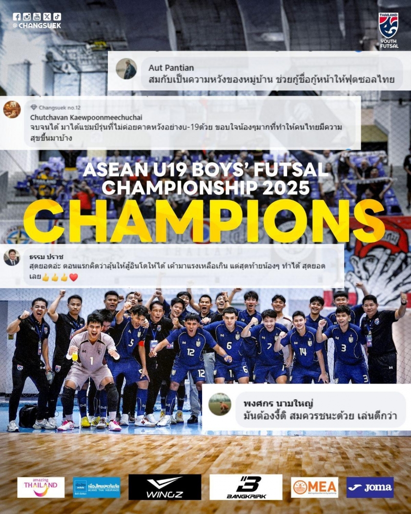Numerous supporters also emphasized the technical quality behind the victory. According to them, Thailand’s U19 futsal played cohesively, efficiently, and deserved the win over their opponents in the final. “That’s how it should be! The win is fully deserved because they played better,” a comment that received widespread agreement.