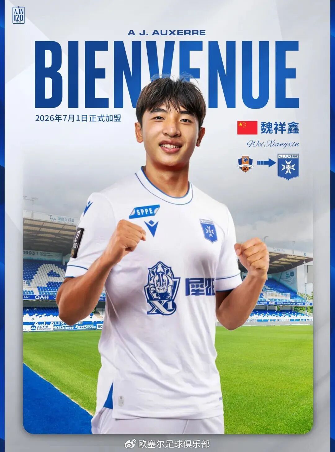 About to join one of Europe’s top five leagues, Wei Xiangxin is one of China’s most watched rising stars and a new overseas hope for Chinese players. In April, he was invited for a three-week trial with Ligue 1 club Auxerre in France. In November, the club announced he will officially join on July 1 next year. Wei revealed he will train in France for a month in January before returning to play in China League One, as it’s hard to maintain form without matches in the first half of the year.