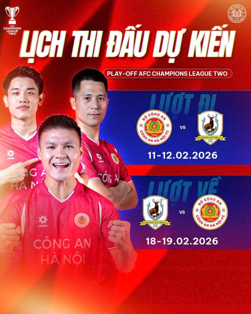 After the draw for the knockout stage of the 2025/26 AFC Champions League Two, the sole Vietnamese football representative is Công An Hà Nội FC (CAHN), who have identified their round of 16 opponent as Singapore’s Tampines Rovers. According to the Asian Football Confederation (AFC) announcement on the afternoon of December 30, CAHN will host the first leg at Hàng Đẫy Stadium before traveling to Singapore for the return leg in February 2026.