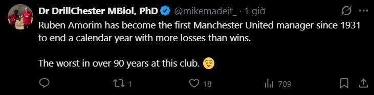 After the match, most criticism was directed at coach Ruben Amorim, who was blamed for complicating the team’s situation with a puzzling tactical choice. Before kickoff, many fans expected Man United to stick with the 4-2-3-1 formation that showed promise against Newcastle. Instead, Amorim reverted to his usual three-center-back setup, which made the Red Devils’ play sluggish, predictable, and easy to counter.