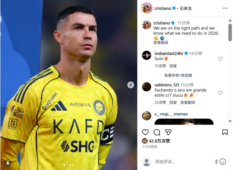 Following the 2-2 draw between Al-Nassr and Damac, Ronaldo posted a solo photo on social media with the caption:We are on the right path, and we know our goals for next yearNext year is the World Cup year. Ronaldo previously stated that the World Cup is not just a dream, but the only way for him to join the ranks of the greatest. The goals for next year may be winning titles with Al-Nassr and leading a star-studded Portugal squad to a World Cup victory.
