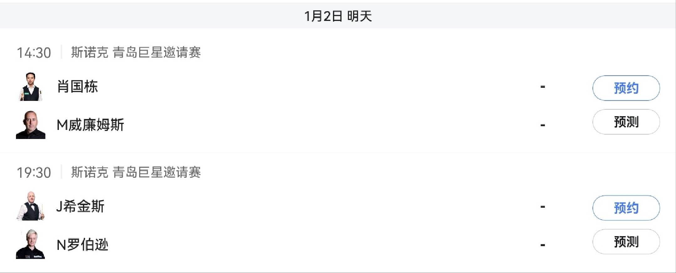 The Snooker Qingdao Superstar Invitational on January 1, 2025, will see Xiao Guodong, Williams, Higgins, and Robertson in action, broadcast live on Huya.