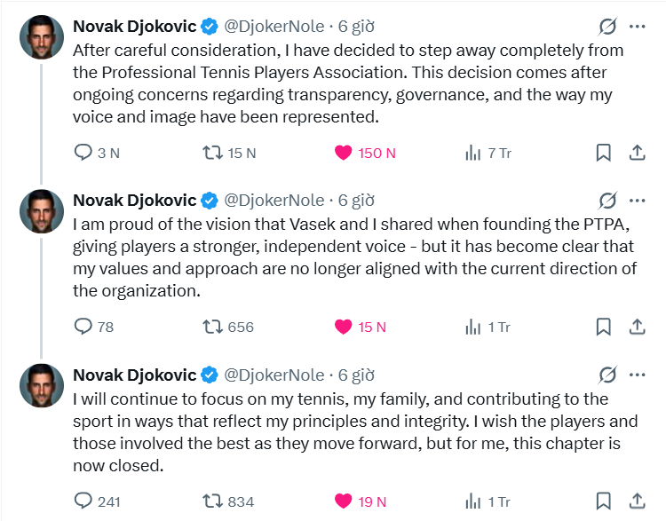 In his latest statement, Djokovic expressed pride in the original vision he shared with Vasek Pospisil when founding the PTPA, aiming to give players a stronger and more independent voice. However, the Serbian player candidly acknowledged that his values and approach no longer align with the current direction of the organization.