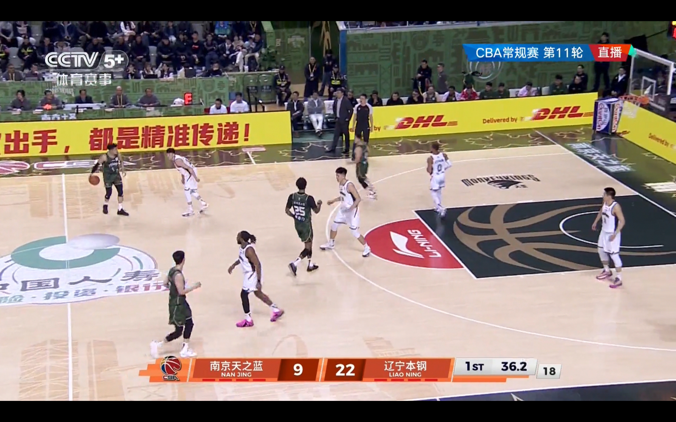 The CCTV-5+ channel is broadcasting the CBA game between Nanjing Monkey Kings and Liaoning Bengang live.