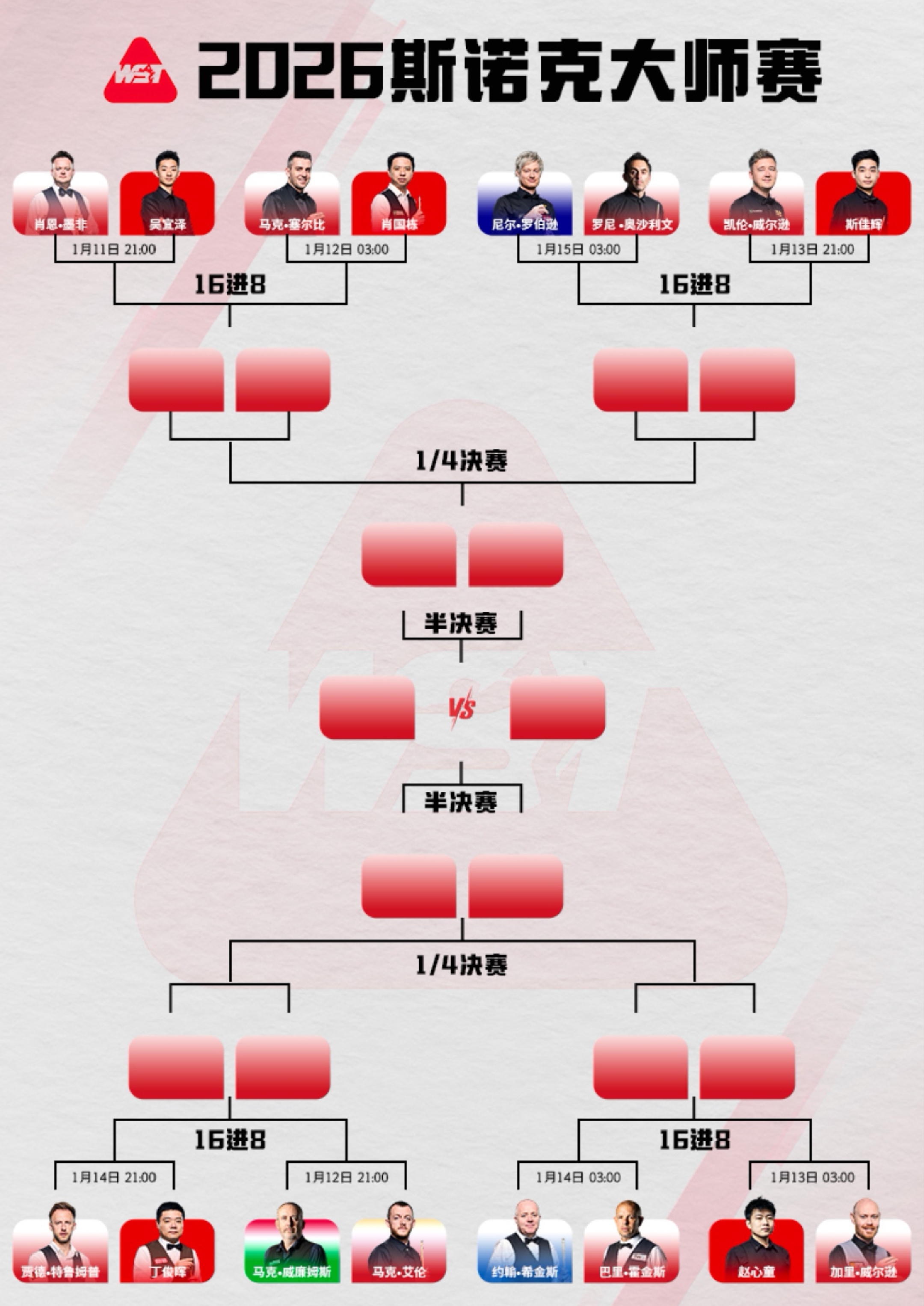At 9 PM on January 13, 2026, Si Jiahui will play against Kyren Wilson.