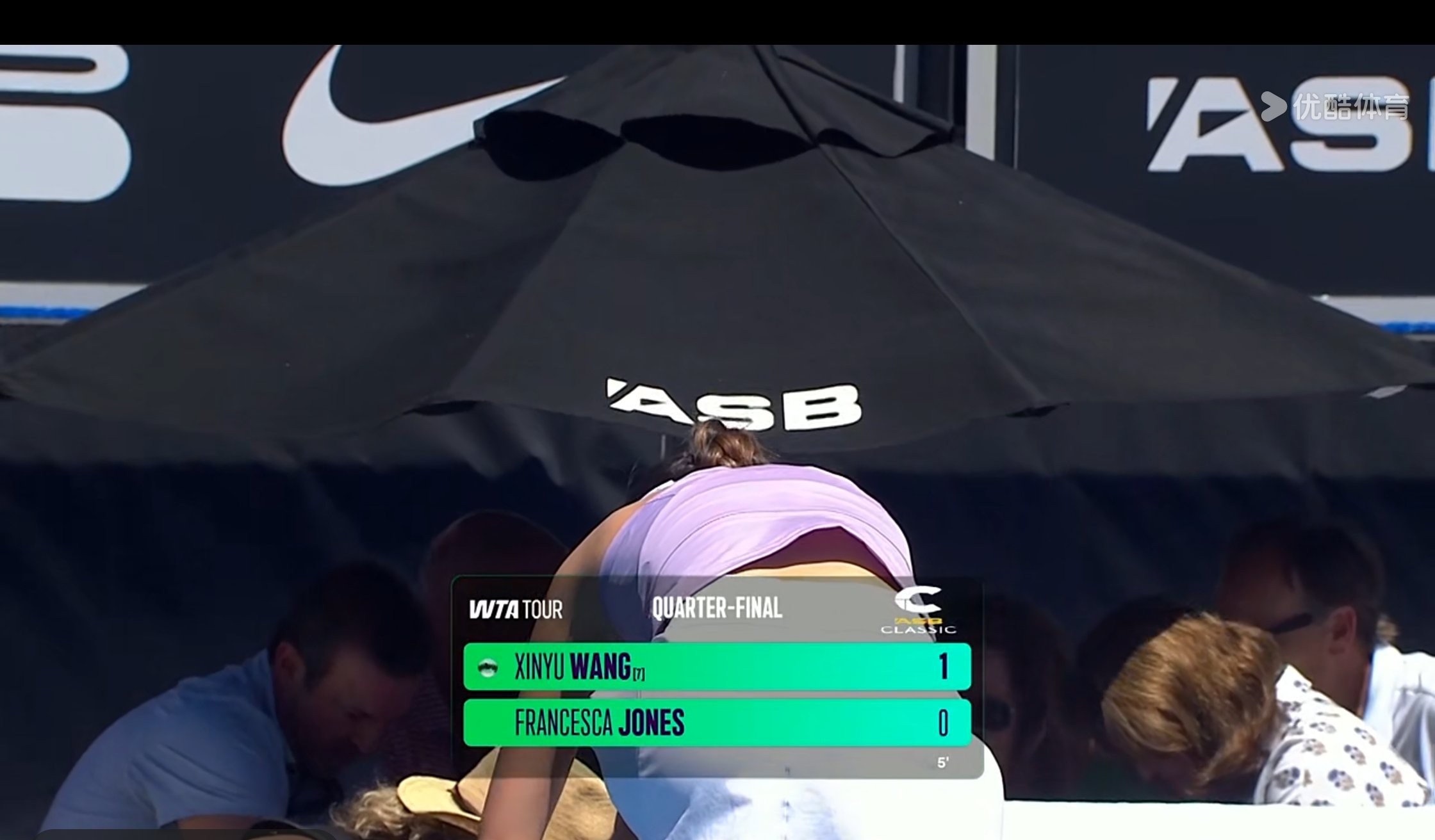 Youku Sports Channel and Migu Video are live streaming the WTA250 Auckland quarterfinal match between Wang Xinyu and Jones.