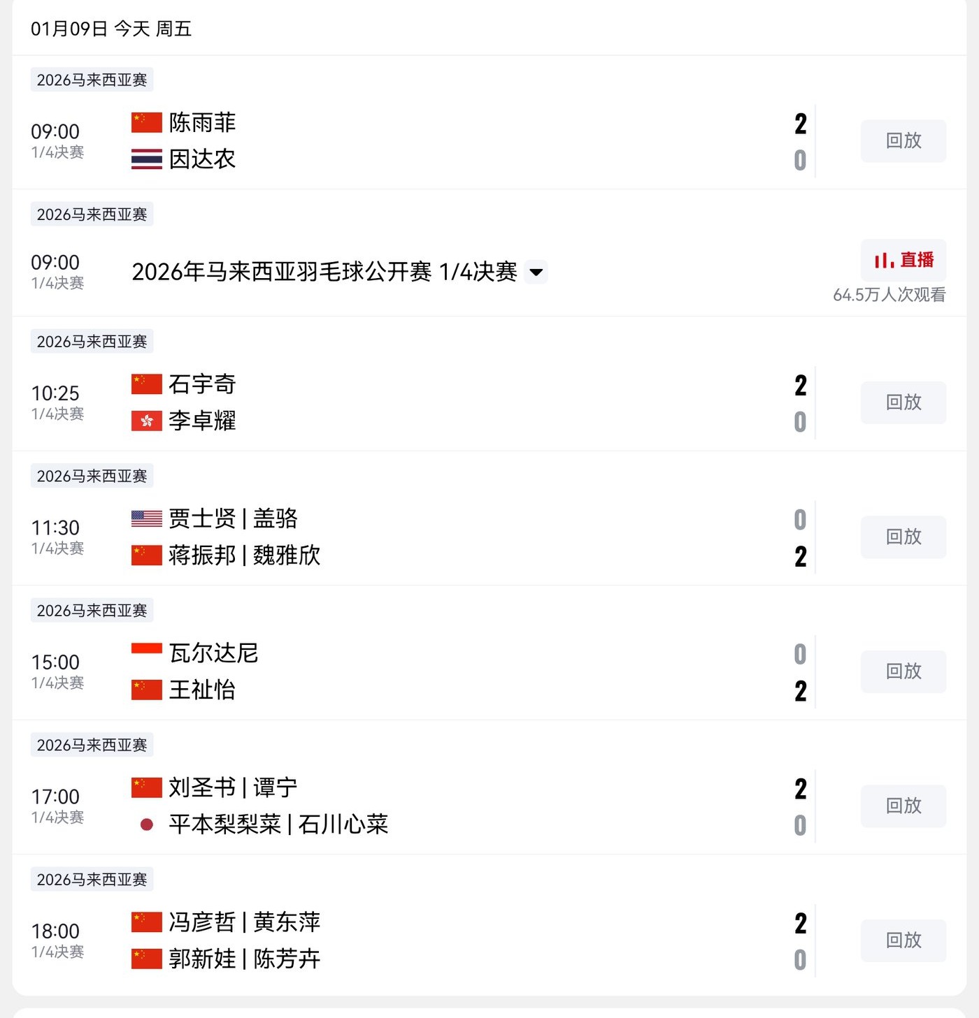 Latest update from the Malaysia Open Badminton Tournament: Chinese team achieves 6 wins and 1 loss; Shi Yuqi, Chen Yufei, and others advance to the semifinals.