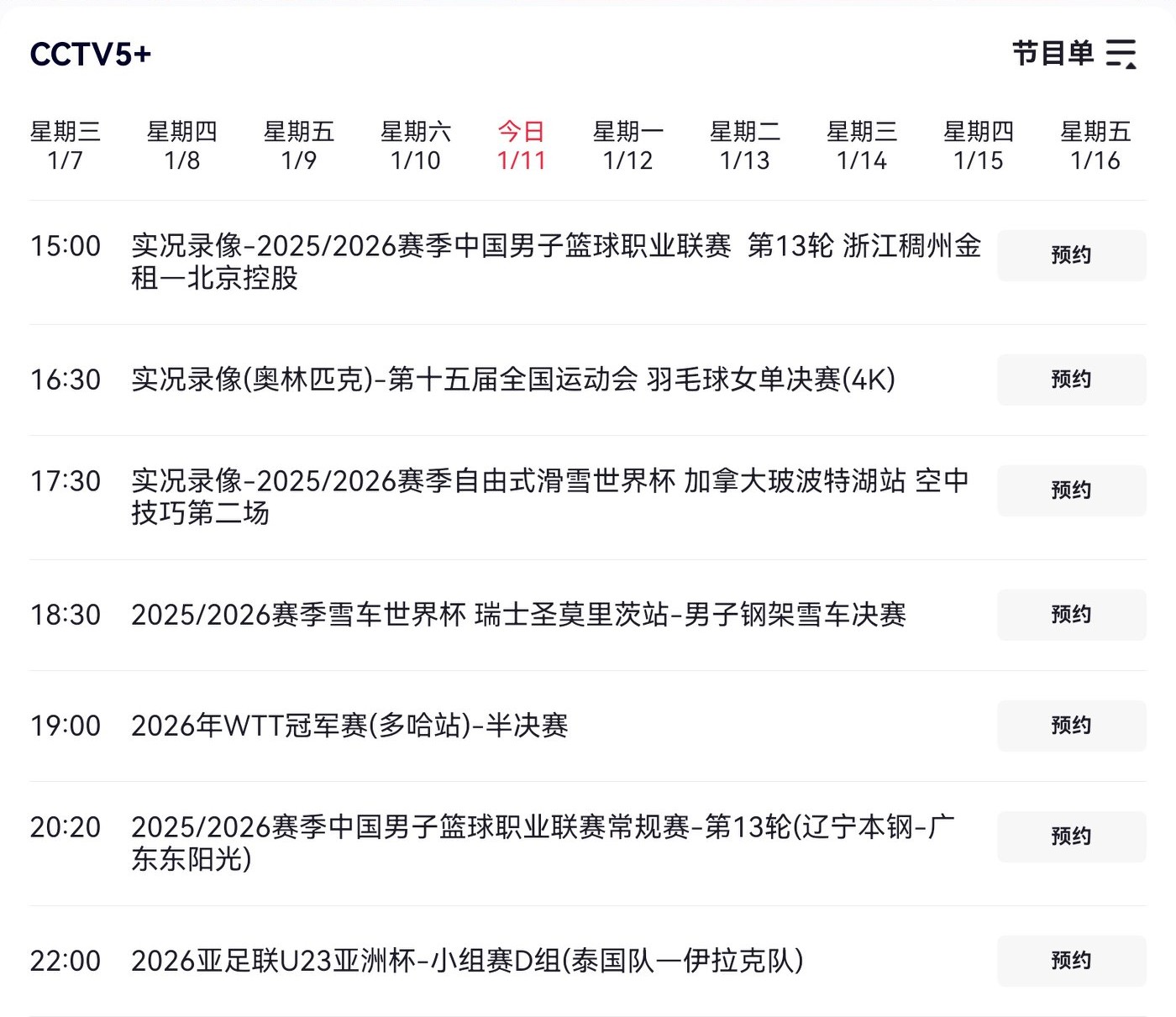 The detailed live broadcast schedule on CCTV-5 is illustrated in the image below.