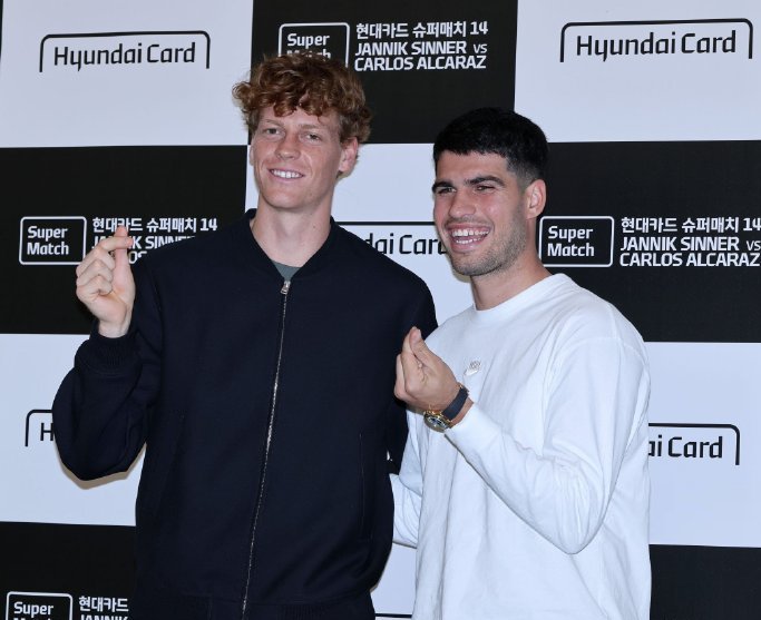 Let's start with the South Korea exhibition. Last night Beijing time, the Incheon exhibition match featuring two star players, world No.1 Alcaraz and world No.2 Sinner, ended excitingly. The result matched many fans’ expectations: Alcaraz narrowly defeated Sinner 7-5, 7-6, reflecting the common belief that the world No.1 should be slightly stronger than No.2. Of course, this was purely an exhibition match, with each player earning $2.3 million appearance fees, so the key was entertaining the live audience and having fun. After the match, both players will head to Melbourne to prepare for the upcoming Australian Open.