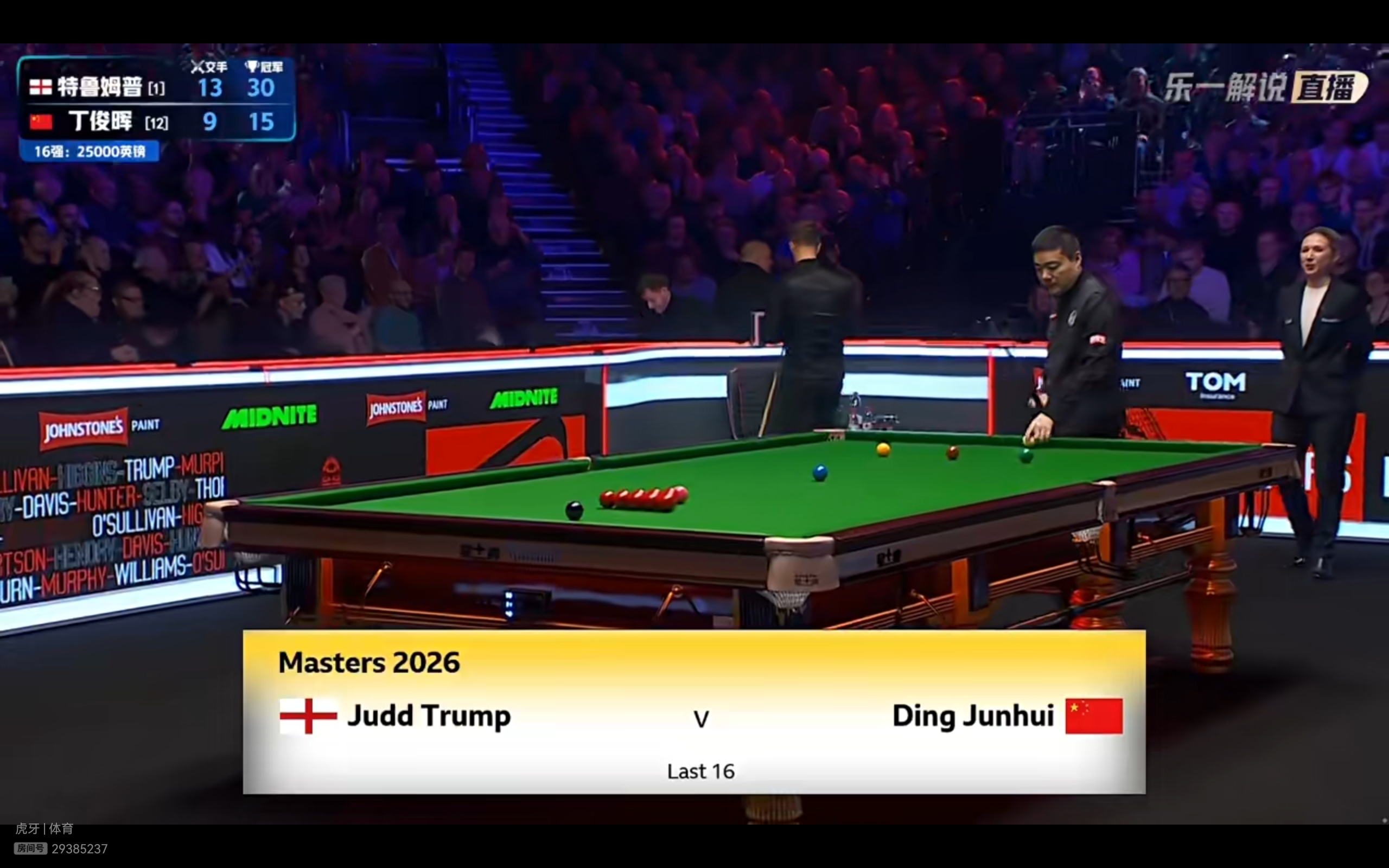The Snooker Masters match between Ding Junhui and Trump is currently live on CCTV Video and Huya streaming services, with CCTV-5 scheduled to broadcast it at 10 PM tonight.