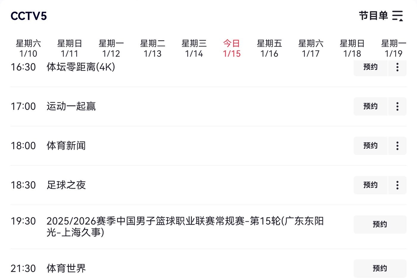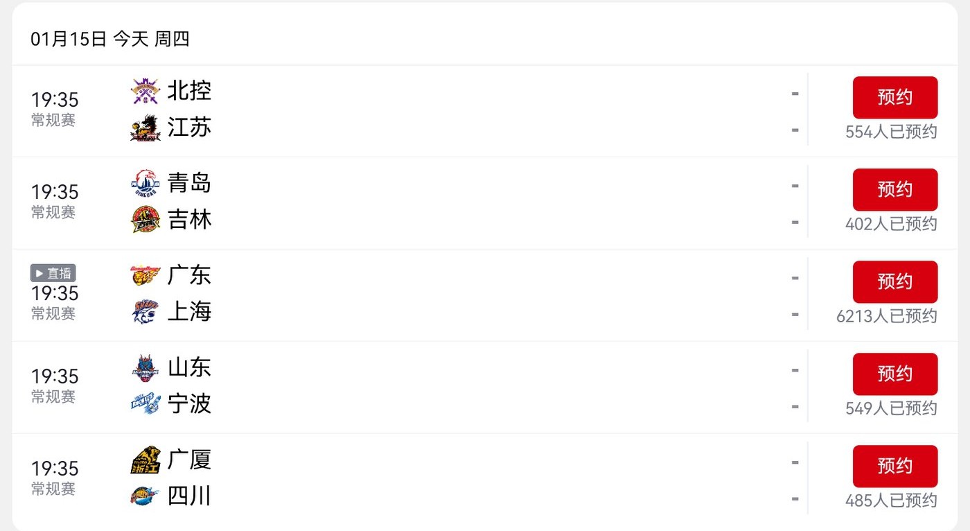 CBA schedule for today (2026.1.15): Guangdong Dongyangguang versus Shanghai Jiushi, live on CCTV-5.