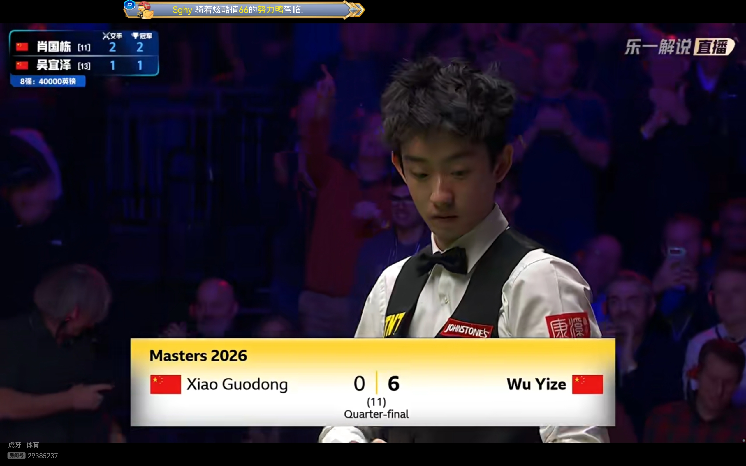 Latest Snooker Masters update: Wu Yize beats Xiao Guodong 6-0, advancing to the semifinals for the first time in his career.