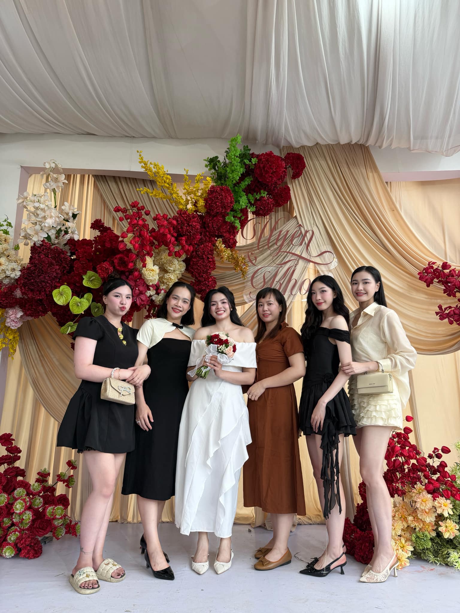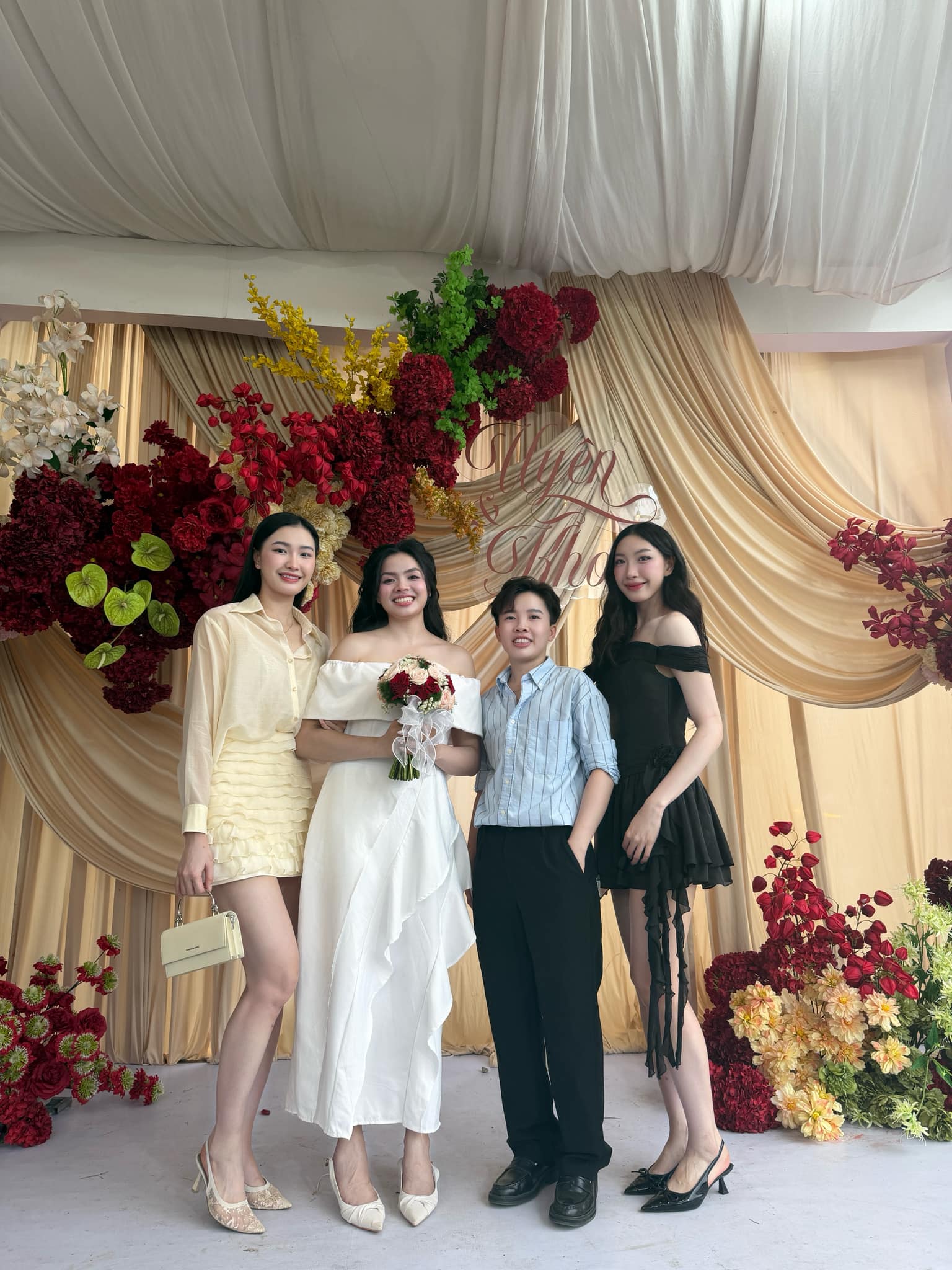 "Today, the person in my heart becomes the person in my home," said Trần Nguyễn Quí Uyên. Athletes at VTV Bình Điền Long An like Kim Thoa and volleyball beauty queen Đặng Thị Kim Thanh came to congratulate Quí Uyên.